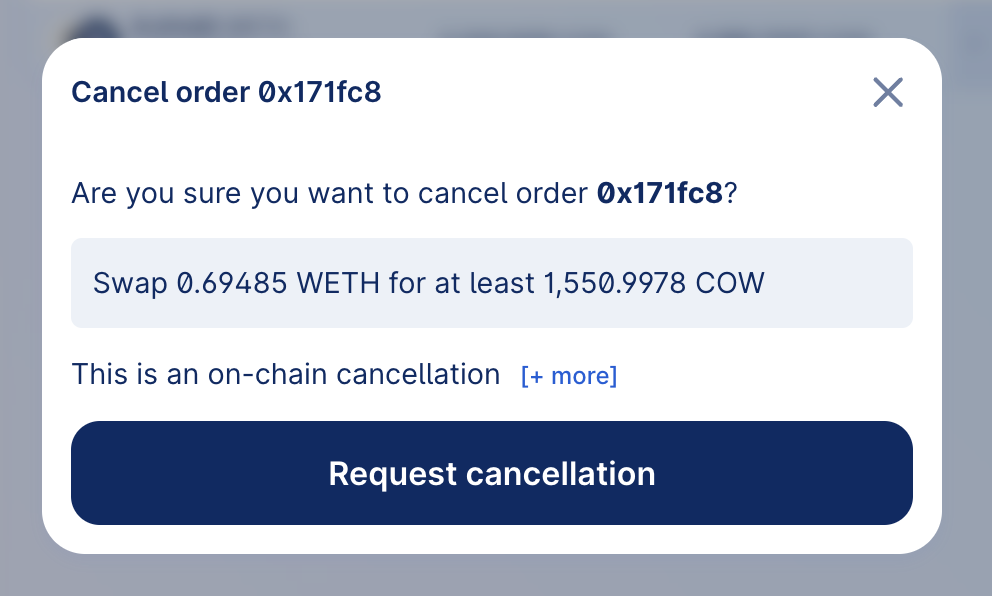 A confirmation window will appear, summarizing the order you are about to cancel, including the swap details and the transaction type. This is your opportunity to review and ensure that you are canceling the correct order.